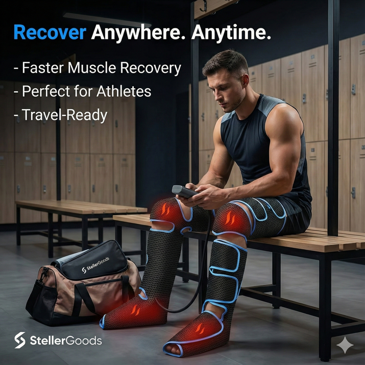 Answer 1: The device utilizes air compression, heating, and adjustable modes to provide effective muscle relaxation and recovery for your legs, alleviating fatigue and stiffness.