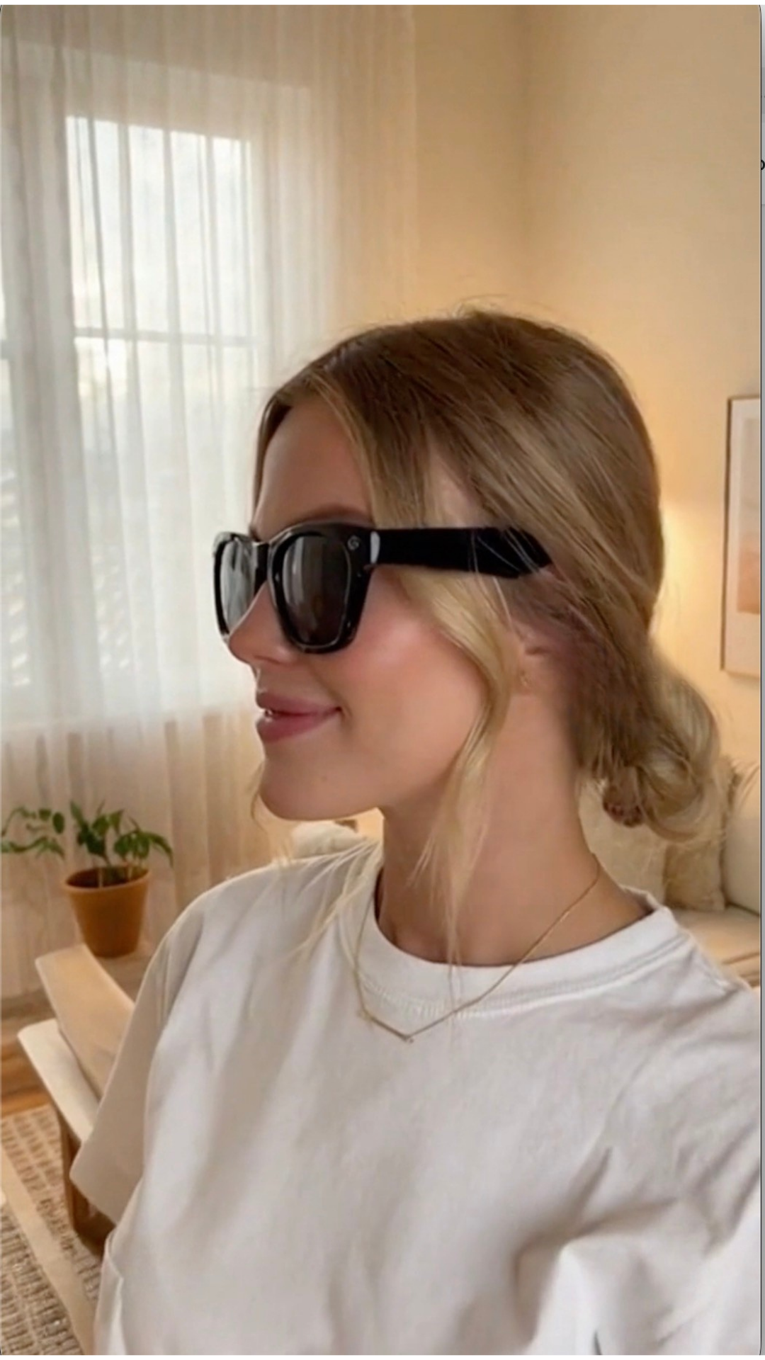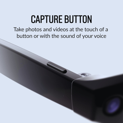 Simply press the touch-sensitive button on the frame or use the built-in voice command — just say “Start recording” or “Take a photo.” The HD 1080p lens instantly captures what you see, completely hands-free.